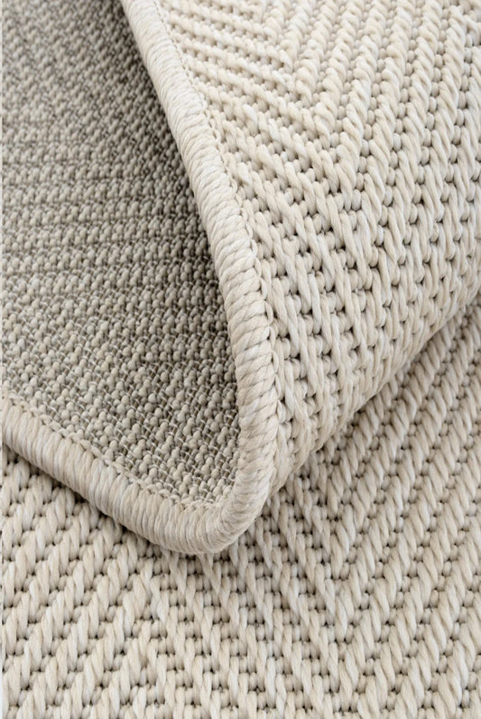 سجادة رومانو 8785 كريمية - سجادة عصرية منسوجة من الجوت، مصنوعة من قش السيزال المقاوم للغبار، وممر بيضاوي الشكل ودائري الشكل
