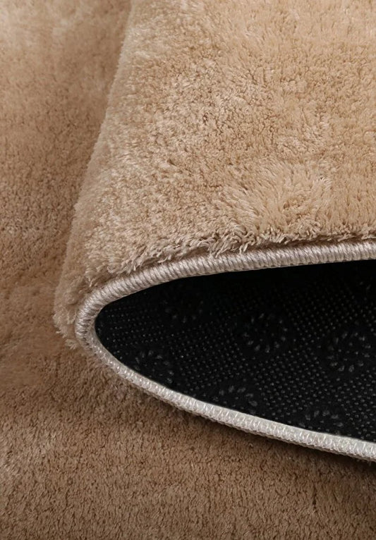 PUFFY Krem - Yumuşak Kaymaz Taban Yıkanabilir Peluş Halı & Yolluk & Oval & Daire