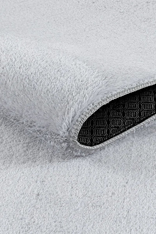 PUFFY Açık Gri - Yumuşak Kaymaz Taban Yıkanabilir Peluş Halı & Yolluk & Oval & Daire