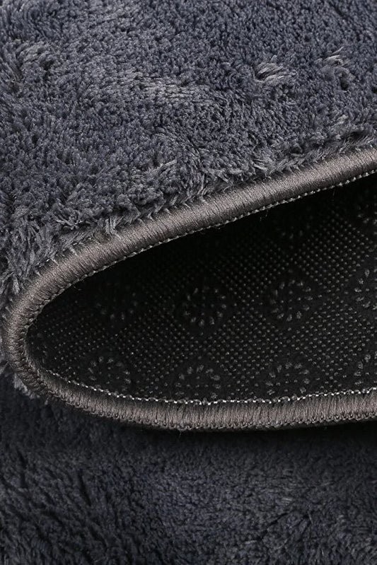 PUFFY Antrasit - Yumuşak Kaymaz Taban Yıkanabilir Peluş Halı & Yolluk & Oval & Daire