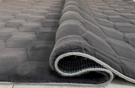 PUFFY BUBBLE Antrasit - Yumuşak Kaymaz Taban Bubble Serisi Yıkanabilir Peluş Halı & Yolluk & Oval & Daire